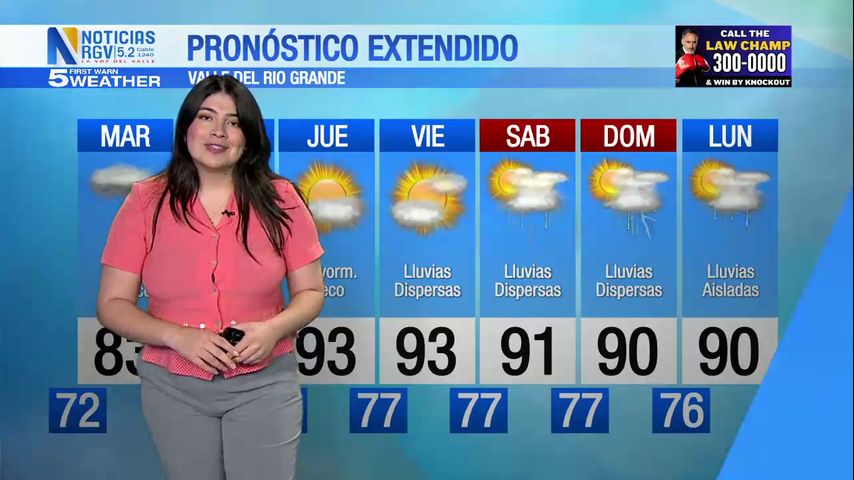 Lunes 9 de Septiembre: Fuertes lluvias y riesgo de inundación, temperaturas en los 80s