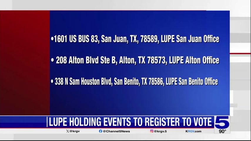 LUPE is hosting three events on Monday to help people register to vote at their offices in San Juan, Alton and San Benito.