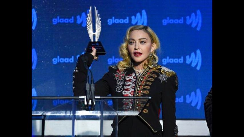 NEW YORK (AP) - Madonna, a pioneer for gay rights, accepted the Advocate for Change Award at the 2019 GLAAD Media Awards with a rousing speech that went from playful to emotional, bringing the audience to its feet.