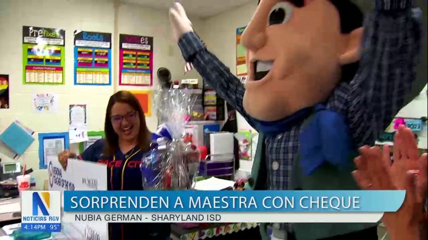 La educadora, Nubia German, quien lleva 19 años en el magisterio, fue nominada por sus compañeros de la Escuela Primaria Donna Wernecke, y fue sorprendida en su clase de segundo grado con un cheque de $2,500.