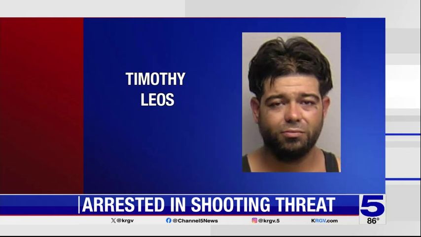 The news release said police, with assistance from a Texas Department of Public Safety helicopter, were able to locate Leos' vehicle. A traffic stop was initiated near Stewart Road and State Highway 107 by a Hidalgo County Sheriff's deputy. Leos was arrested without incident.