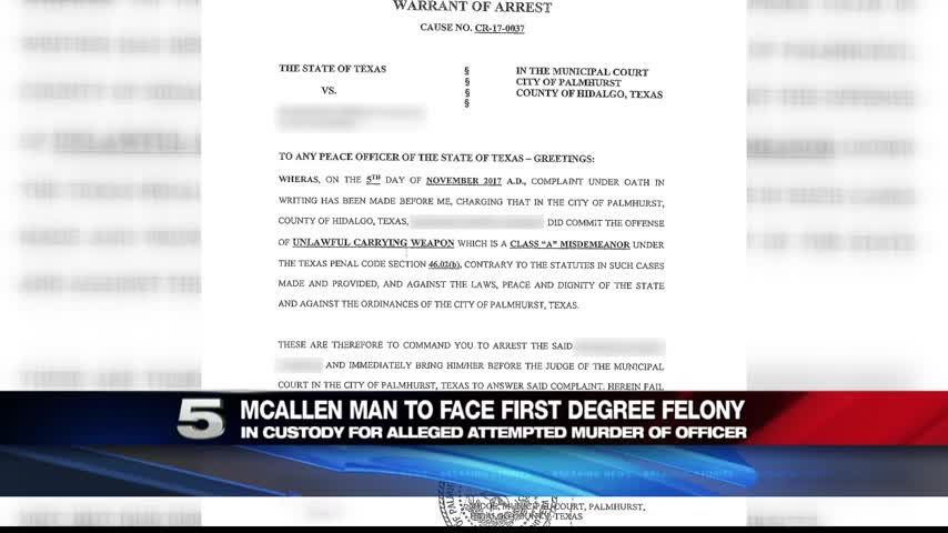 MCALLEN – A McAllen man is in custody for the attempted murder of a Palmhurst police officer, according to an arrest warrant and affidavit from the city.