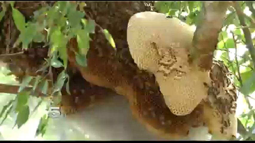 “I thought I got rid of them,” he says. “[I] came outside, looked up there in the tree and there was a big beehive.”