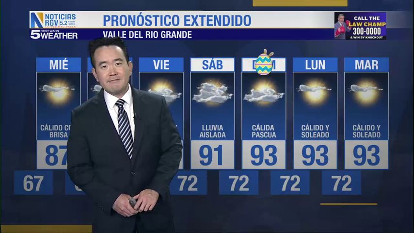 Martes 15 de Abril: Cálido con brisa, temperaturas en los altos 80s