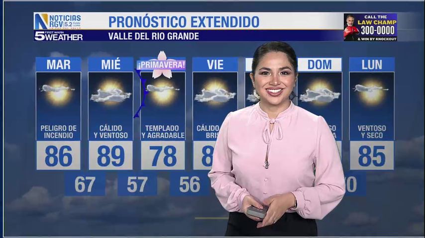 Martes 18 de Marzo: Advertencia por vientos fuertes, temperaturas en los 86s
