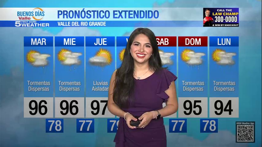 Martes 27 de Agosto: Tormentas dispersas, temperaturas en los 96s