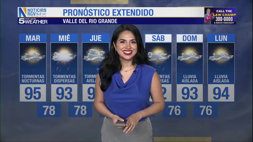 Martes 27 de Mayo: Lluvias dispersas, temperaturas en los 95s