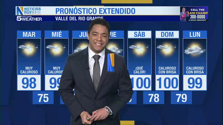 Martes 29 de Julio: Caluroso con temperaturas en los 98s