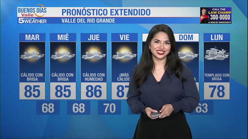 Martes 4 de Febrero: Cálido con brisa, temperaturas en los 85s