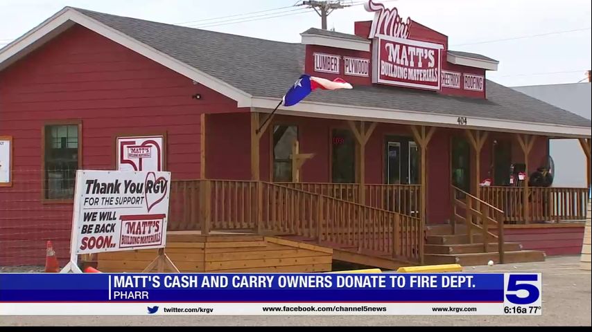 The owners of Matt’s Building Materials are giving back to the community after their Pharr location was destroyed by a fire.