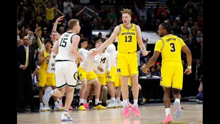 The Wolverines were up 60-55 after Livers hit a 3 with 2:29 left, but they didn't score again. McQuaid answered with one of his own to start the game-ending run and Xavier Tillman made a tying layup for Michigan State.