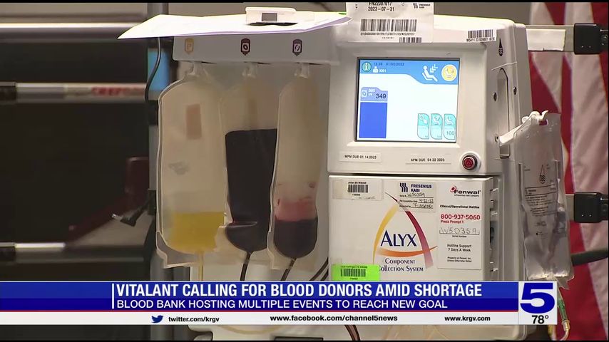 "We only get 20% percent of the blood that's donated here in the Valley,” Kassandra Peña — account manager of Vitalant’s McAllen location — said. “Everything else we have to bring in from elsewhere, so we have a critical need here in the Valley for donors and blood in general."