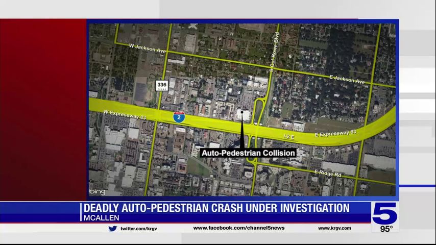 The auto-pedestrian crash happened on the 200 block of West Expressway 83 at about 9:16 p.m.