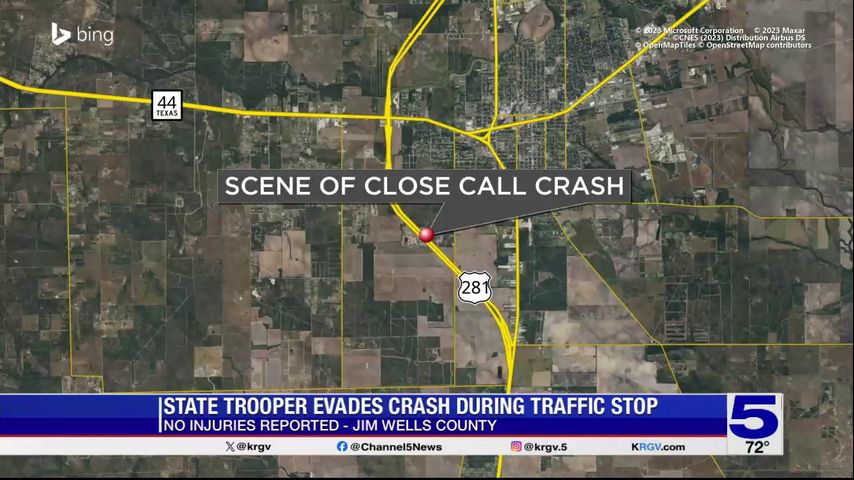 The incident happened in Jim Wells County. Authorities say a man from McAllen was driving when he traveled onto the shoulder where the trooper was conducting the traffic stop.