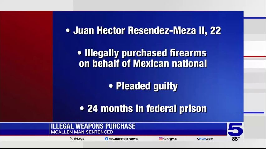 A McAllen man has been sentenced to federal prison for illegally purchasing firearms on behalf of a Mexican national, according to U.S. Attorney Alamdar S. Hamdani.