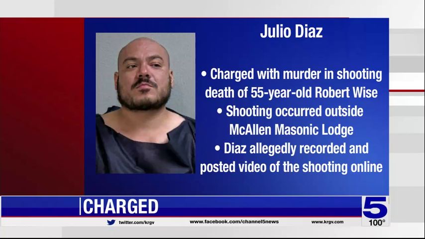 Julio Diaz, 35, is accused of killing 55-year-old Robert Wise on July 10. The McAllen Police Department responded to a male who was shot on the 100 block of north 11th Street, according to the complaint.