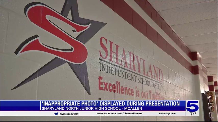 In a statement provided Wednesday by the Sharyland Independent School District, the district said an “inappropriate image” was presented to students, and called the incident “troubling.”