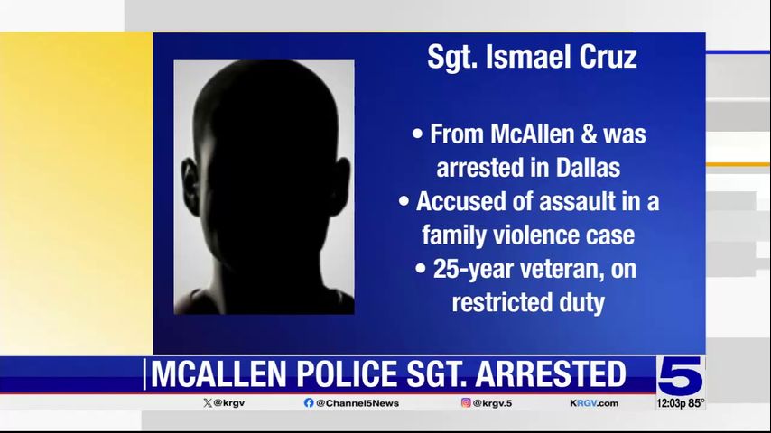 McAllen police spokesperson Olivia Lopez said Sgt. Ismael Cruz was arrested on a charge of assault contact family violence.