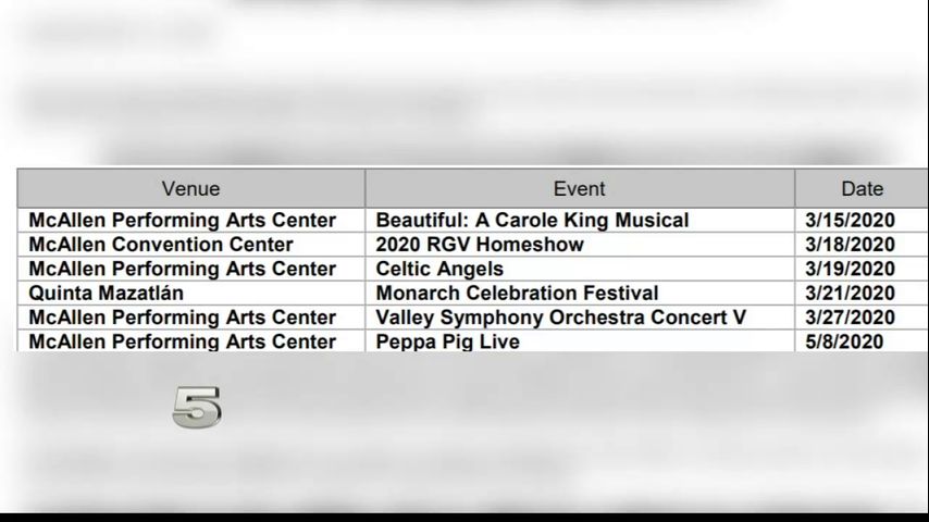 MCALLEN - City leaders are postponing events at the Convention Center and Performing Arts Center due to the coronavirus.