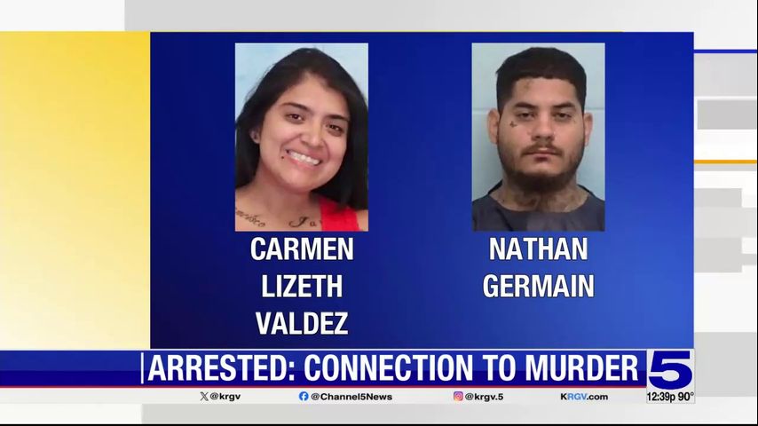 McAllen police say 30-year-old Nathan Germain and 31-year-old Carmen Liseth Valdez, both from Donna, are accused of shooting and killing 36-year-old David Martinez, from Donna.