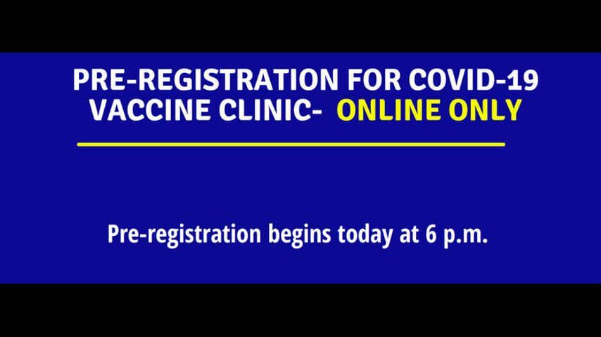 Pre-registration is online only and starts at 6:00 p.m. on Thursday, March 25 for anyone who qualifies under the current general criteria, according to a news release.