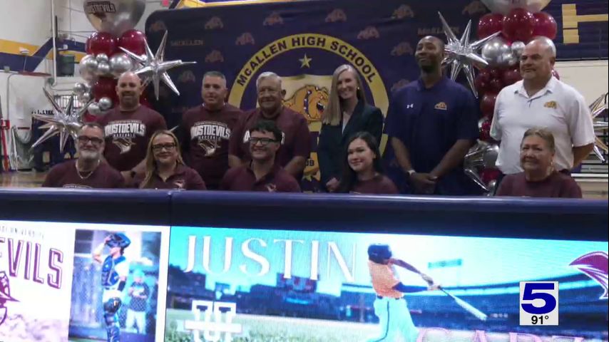 McAllen High's baseball star, Justin Garza signed his letter of intent to Texas A&M International University.