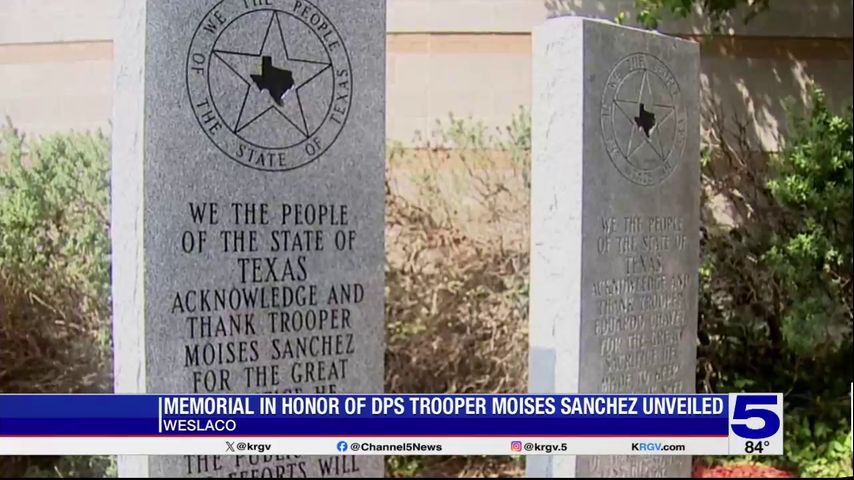 On Thursday, a memorial for DPS Trooper Moises Sanchez was unveiled in front of the DPS regional headquarters in Weslaco.