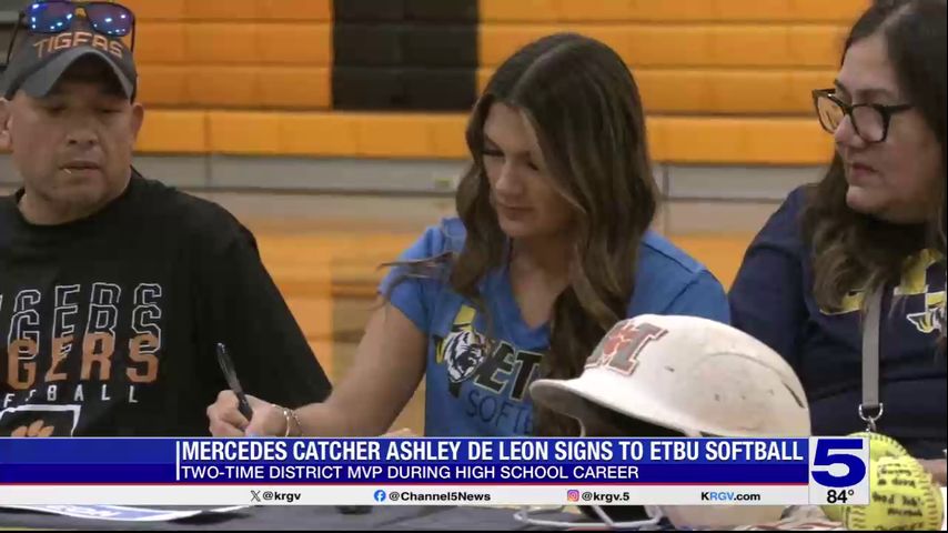 Mercedes catcher Ashley De Leon signed her letter of intent to play softball at East Texas Baptist University on Thursday evening.