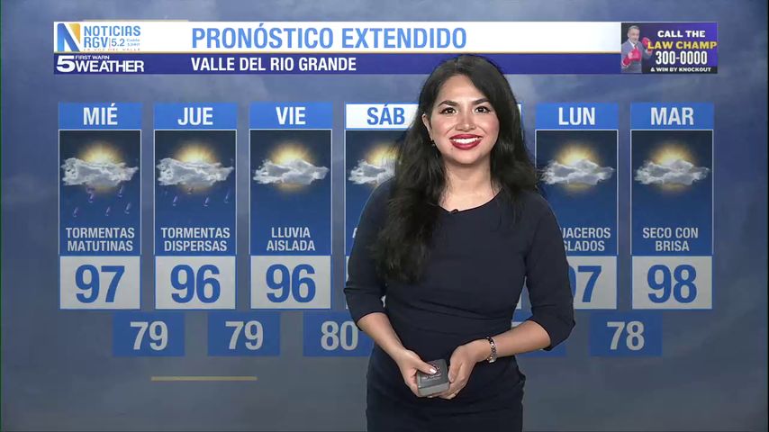 Miércoles 11 de Junio: Tormentas matutinas, temperaturas en los 97s