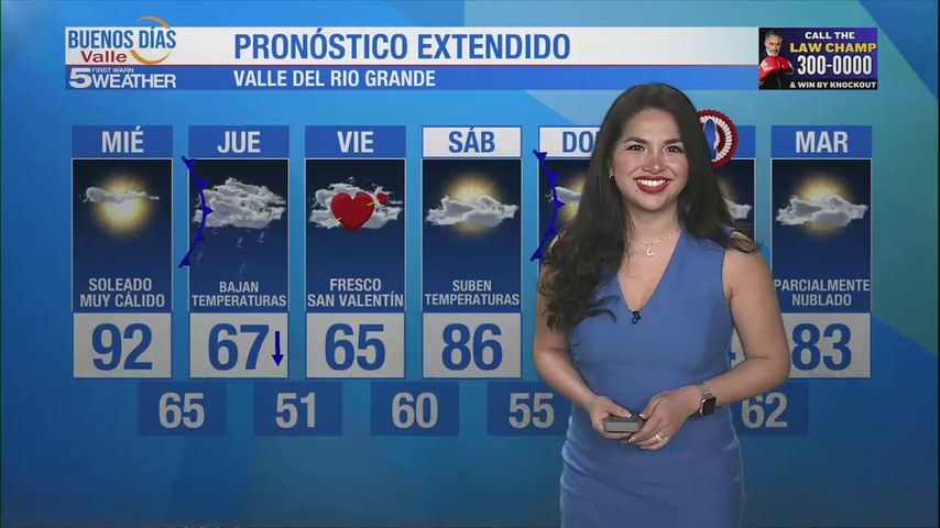 Miércoles 12 de Febrero: Cálido con humedad, temperaturas en los 92s