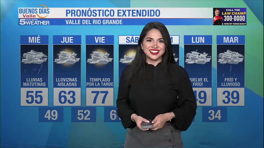 Miércoles 15 de Enero: Fresco con lluvia, temperaturas en los 55s
