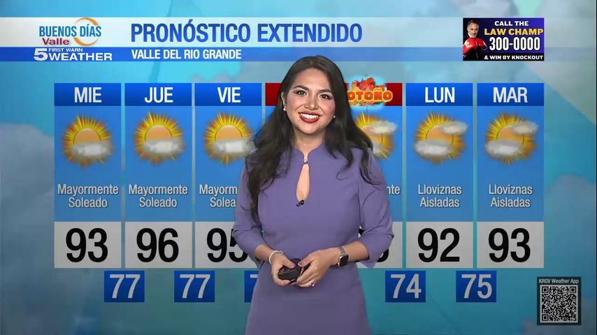 Miércoles 18 de Septiembre: Mayormente soleado, temperaturas en los 93s