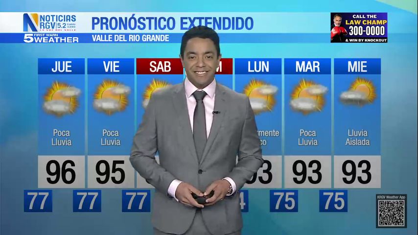 Miércoles 18 de Septiembre: Poca lluvia, con temperaturas en los altos 90s