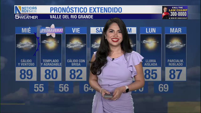 Miércoles 19 de Marzo: Cálido y ventoso, temperaturas en los 89s