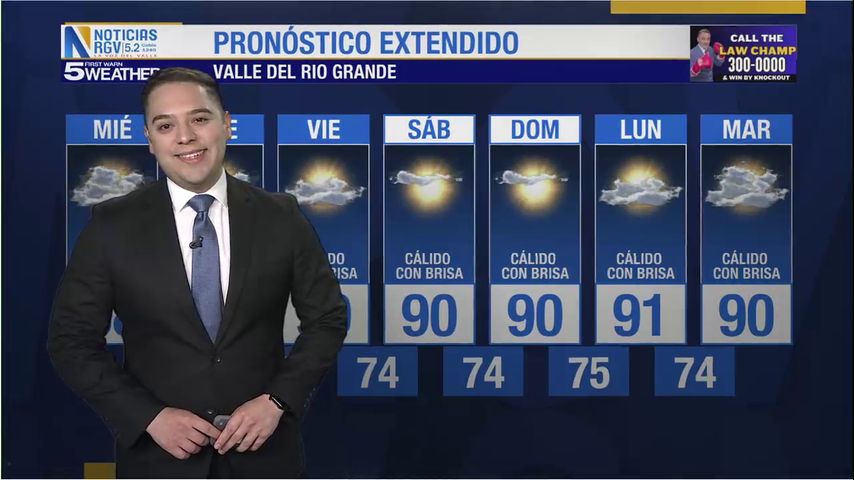 Miércoles 23 de Abril: Nublado con lluvia aislada, temperaturas en los 88s