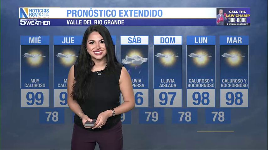 Miércoles 23 de Julio: Caluroso con temperaturas en los 99s