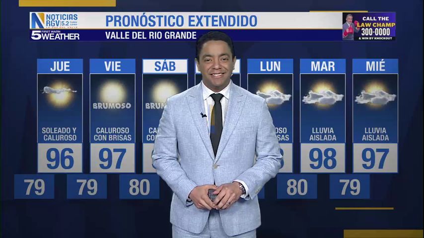 Miércoles 4 de Junio: Soleado y caluroso, temperaturas en los 96s
