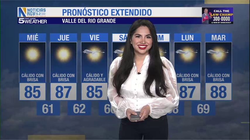 Miércoles 9 de Abril: Cálido con brisa, temperaturas en los 85s