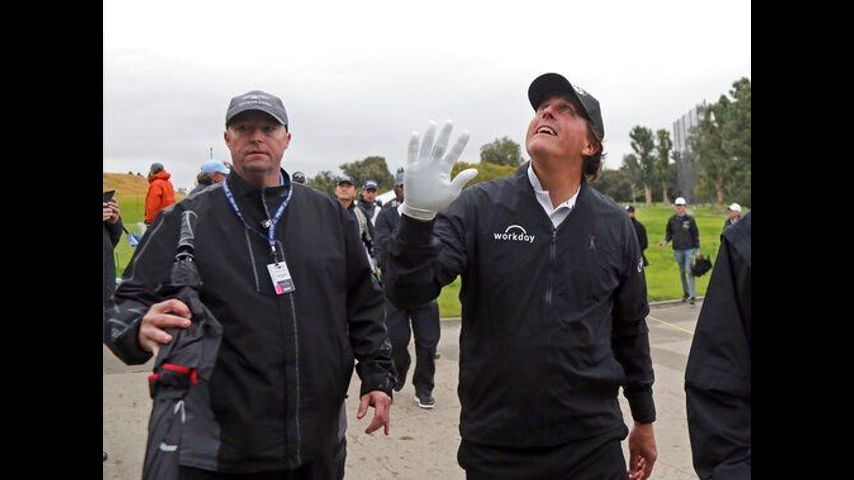 LOS ANGELES (AP) - Phil Mickelson opened with a par Thursday at the Genesis Open before wet conditions halted play at Riviera after less than an hour.