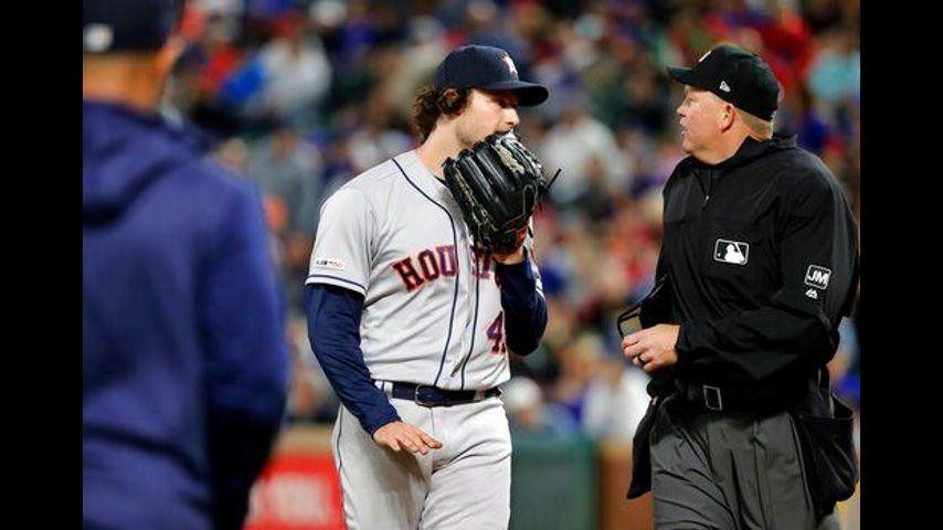 ARLINGTON, Texas (AP) - Gerrit Cole had been frustrated most of the game, like the rest of the Astros, and Houston's starter went immediately to the home plate umpire after recording his final out.