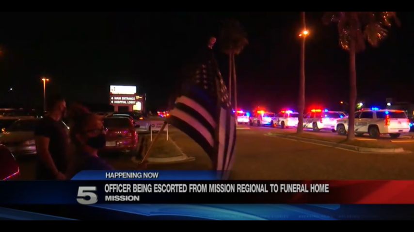A procession took place Monday night to escort a fallen Mission police officer from Mission Regional to funeral home.