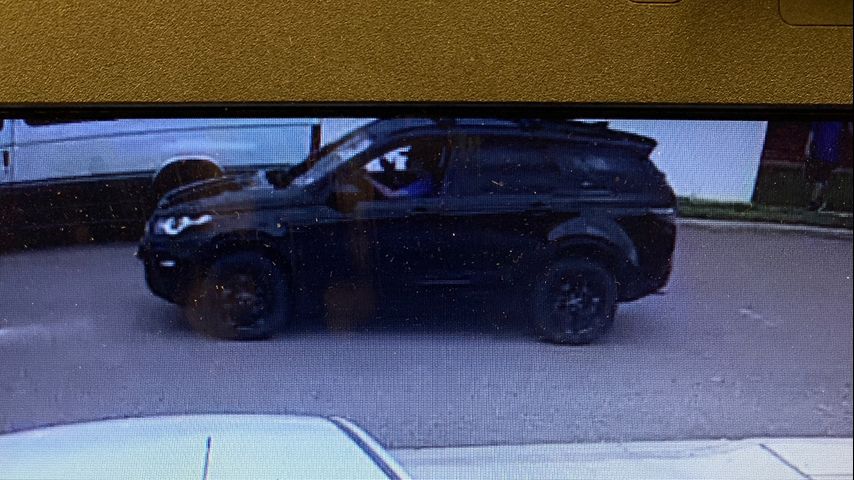 Police are looking for a black Land Rover Discovery model. The male driver is seen wearing a blue shirt.