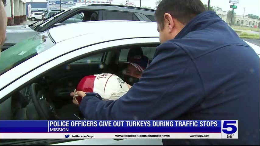 Instead of a ticket, however, officers with the Mission Police Department handed out frozen turkeys Friday to drivers they stopped for traffic violations.
