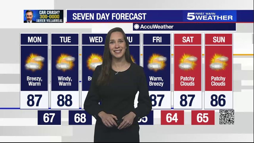 Mon. Feb. 20, 2023: Breezy, warm, and temperatures in the 80s