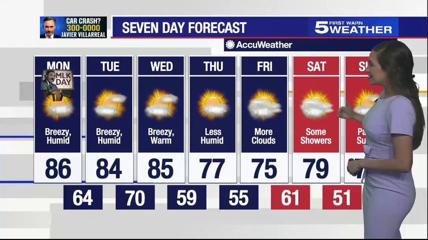 Mon. Jan. 16, 2023: Breezy, humid and temperatures in the 80s