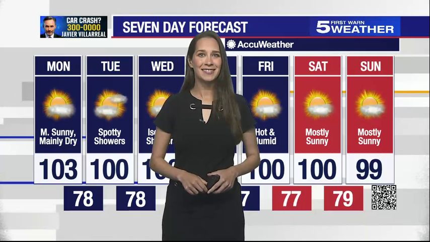 Monday, August 28, 2023: Mainly sunny, dry, temps in the 100s