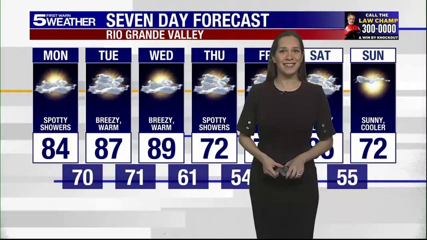 Monday, Feb. 10, 2025: Spotty showers with highs in the 80s