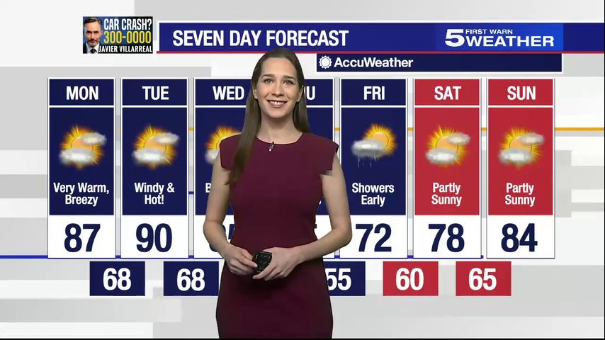 Monday, Feb. 26, 2024: Very warm, breezy, temps in the 80s