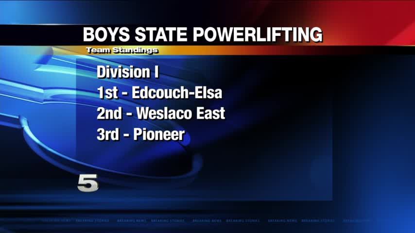 ABILENE - Teams from the Rio Grande Valley went 1-2-3 in the final results of power lifting for boys in Abilene. Here is a listing of the top finishers.