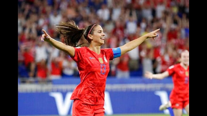 LYON, France (AP) - With Alex Morgan's cheeky tea-sipping celebration and a postgame mobbing of goalkeeper Alyssa Naeher, the United States has moved a step closer to successfully defending its latest Women's World Cup title.